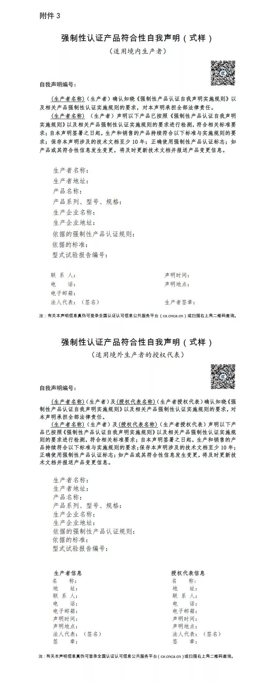 3. 強(qiáng)制性認(rèn)證產(chǎn)品符合性自我聲明式樣