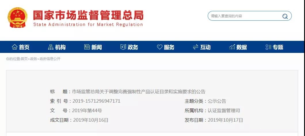 10月17日,市場(chǎng)監(jiān)管總局發(fā)布關(guān)于調(diào)整完善強(qiáng)制性產(chǎn)品認(rèn)證目錄和實(shí)施要求的公告,對(duì)強(qiáng)制性產(chǎn)品認(rèn)證目錄和實(shí)施要求進(jìn)行了調(diào)整: