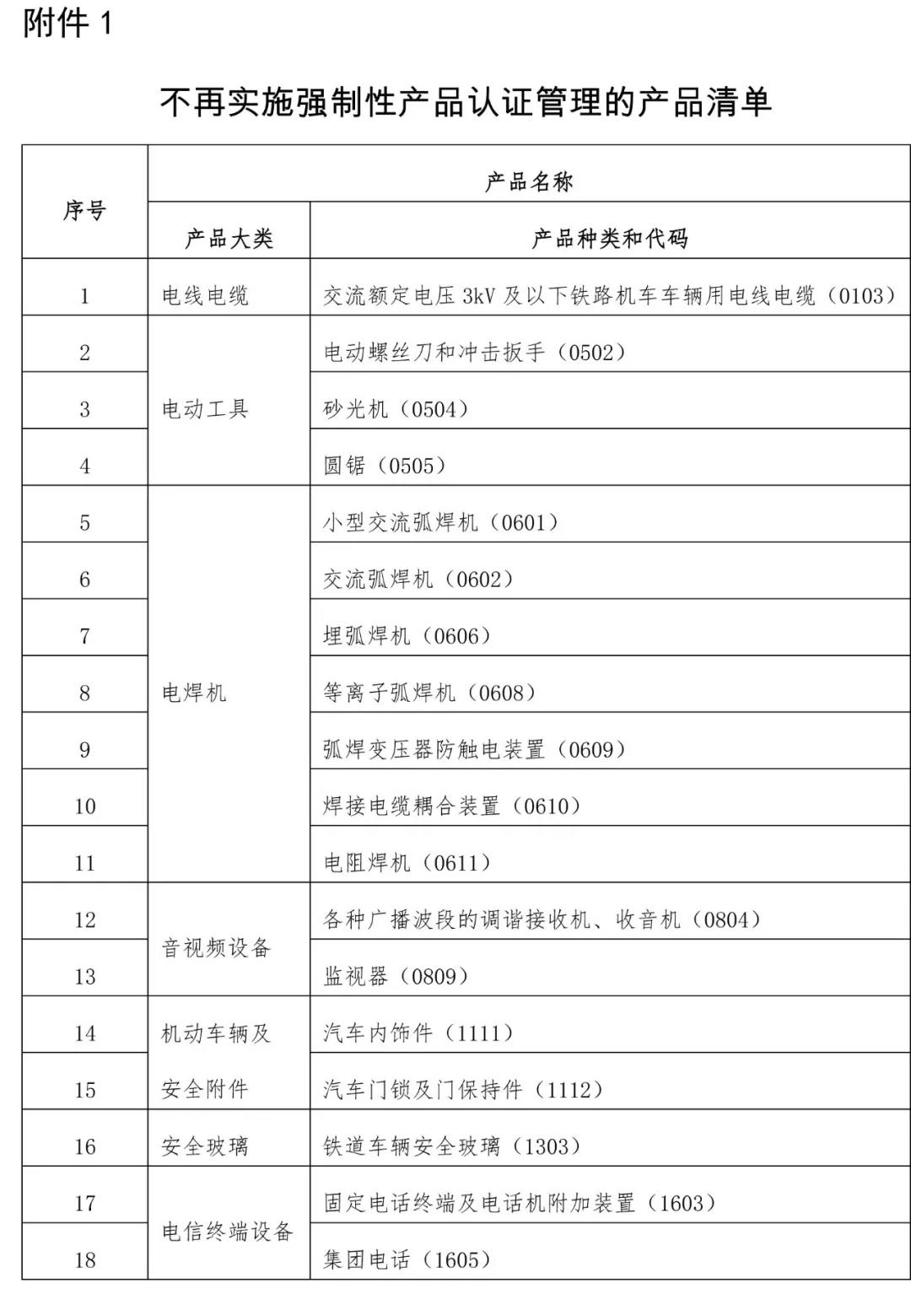 附件:1. 不再實(shí)施強(qiáng)制性產(chǎn)品認(rèn)證管理的產(chǎn)品清單