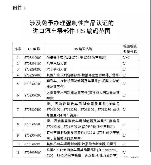 關于對免予辦理強制性產品認證的進口汽車零部件試點實施“先聲明后驗證”便利化措施的公告