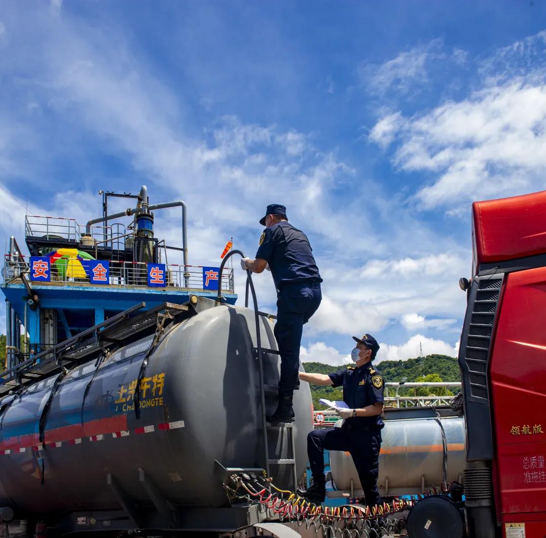 海關關員向出口危化品企業宣貫海關監管政策