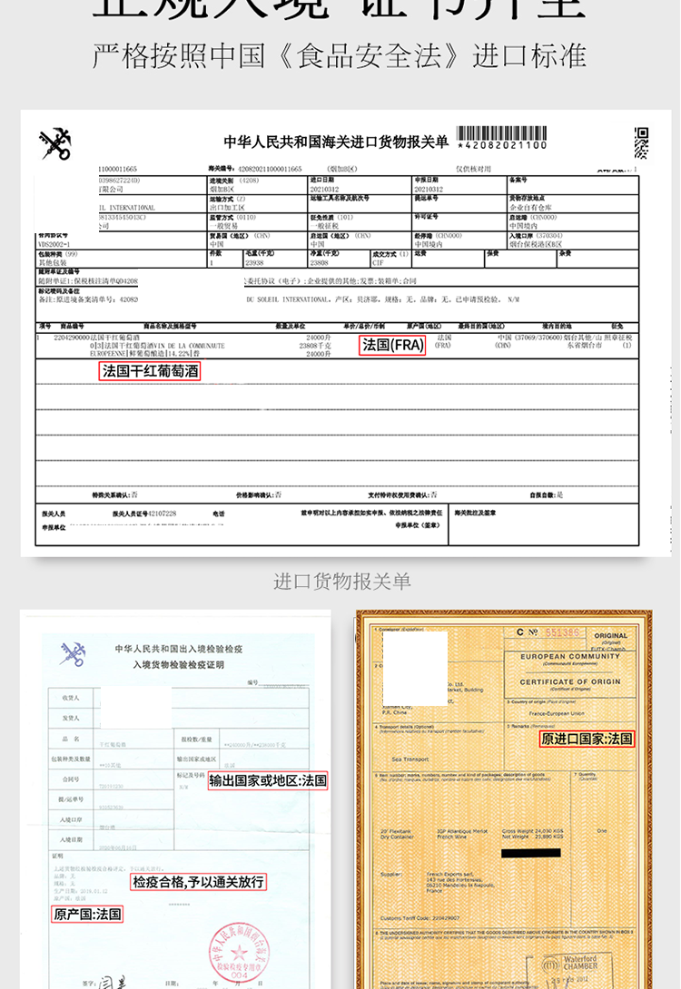 法國紅酒進口報關單和衛生證及港口申報資料案例匯總圖