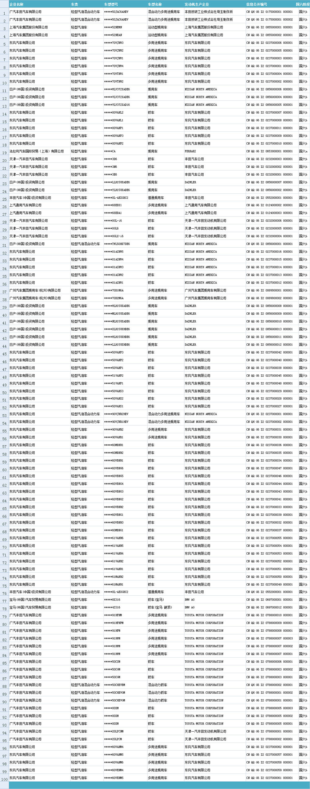輕型車:共有412家企業9903個車型(47805個信息公開編號)40148632輛車進行了輕型車國六環保信息公開,與上周匯總環比增加57個車型、403772輛車(符合6b階段限值的車型占比96.5%、符合6b階段限值的車輛占比96.7%)。其中,國內生產企業385家、9043個車型、38250000輛,國外生產企業28家、860個車型、1898632輛;輕型汽油車企業398家、8847個車型、38267673輛,輕型混合動力車企業51家、319個車型、1418352輛,輕型柴油車企業62家、525個車型、392296輛,輕型燃氣車企業13家、207個車型、46042輛,輕型兩用燃料車企業3家、3個車型、24269輛,輕型甲醇單燃料汽車企業2家、2個車型。